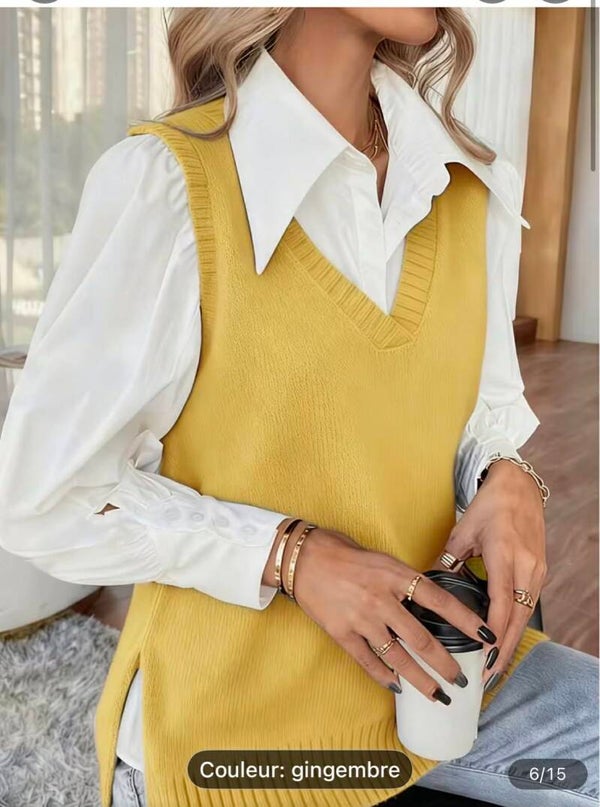 Très beau débardeur, belle couleur, fendu sur les côtés pour un style élégant, se porte avec tout, col en V évasé. 100% Acrylique.