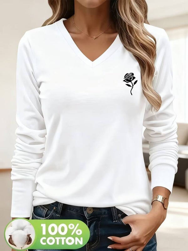Chandail 100% coton, doux et confortable, imprimé fleur. Bleu, noir, rouge, rose, blanc.