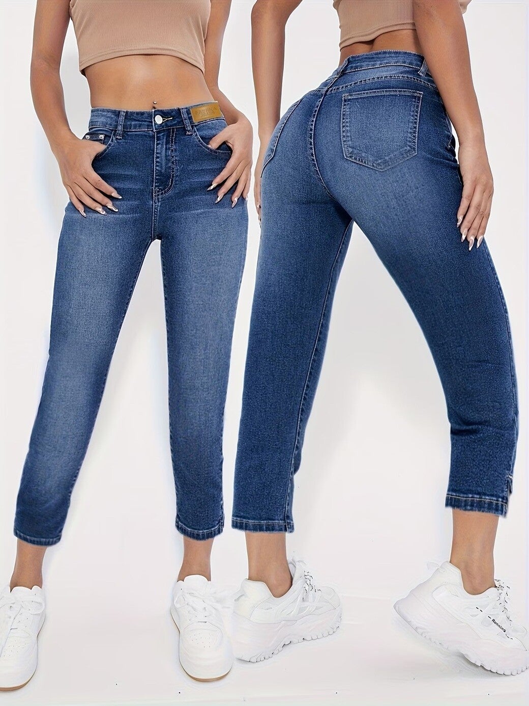 Jeans moulants, tissus extensible, très confortables, style européen, 4 saisons. 55% Coton, 43% Polyester, 2% Élasthanne.