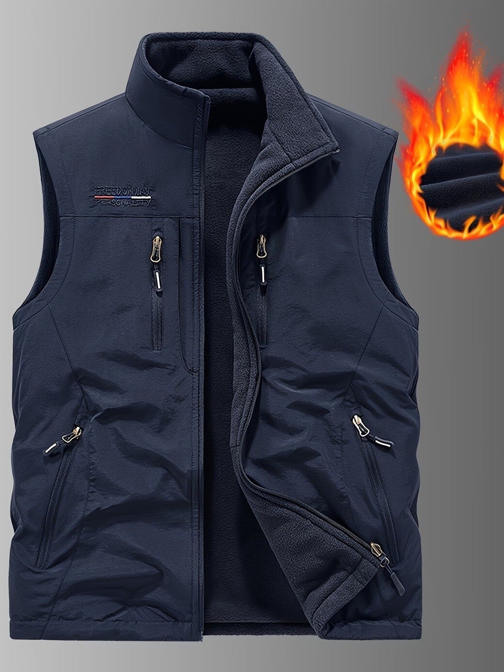 LA Veste sans manche, réversible, doublée en polaire, 4 poches zippées à l'extérieur, 2 poches à velcro et 2 poches zippées à l'intérieur, offre une liberté de mouvements, idéale pour la pêche en plein air, la photographie, la randonnée et les vêtements de travail ou look décontracté. LA veste à toujours avoir avec soi. Excellent produit. Nylon, doublure polaire.