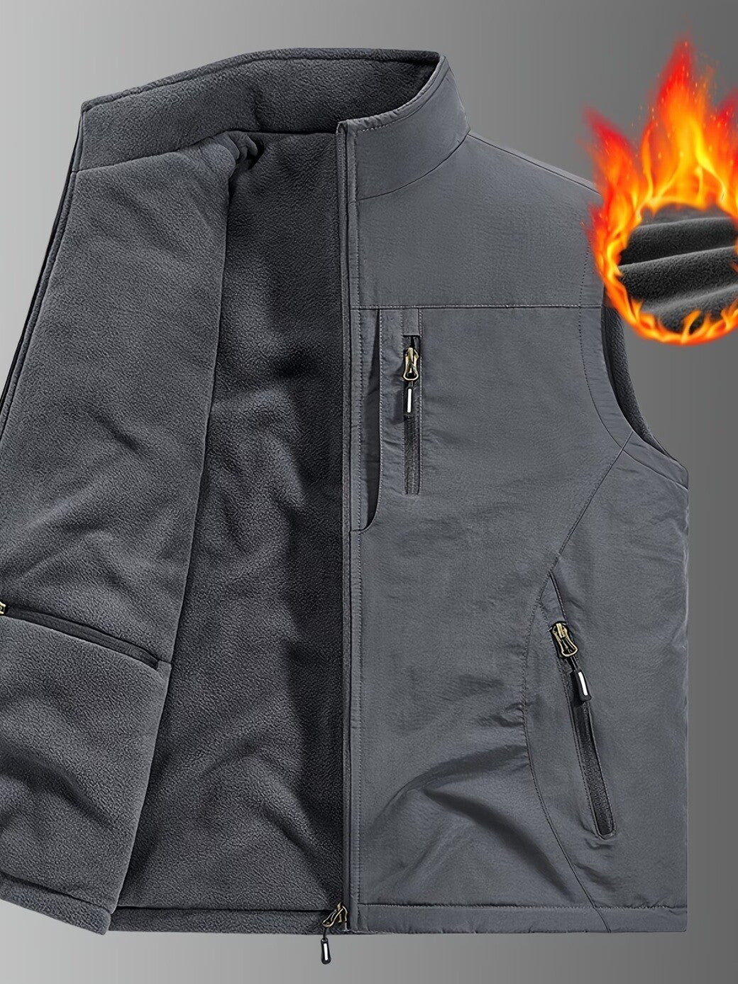 LA Veste sans manche, réversible, doublée en polaire, 4 poches zippées à l'extérieur, 2 poches à velcro et 2 poches zippées à l'intérieur, offre une liberté de mouvements, idéale pour la pêche en plein air, la photographie, la randonnée et les vêtements de travail ou look décontracté. LA veste à toujours avoir avec soi. Excellent produit. Nylon, doublure polaire.
