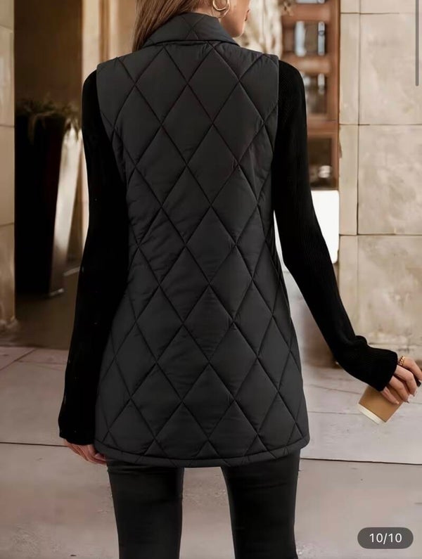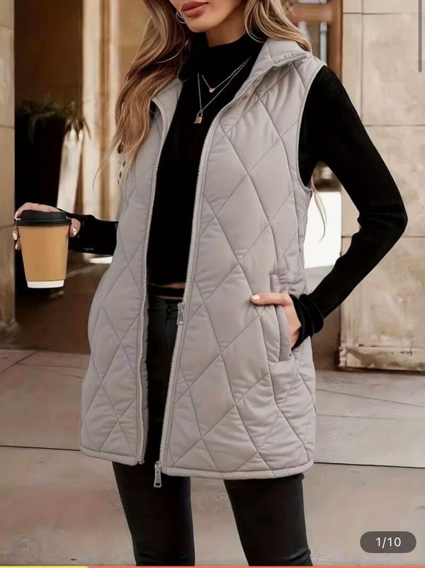 Veste Blazer Sans Manche à Motif Losange - Coupe H avec Col Montant et Fermeture Éclair, avec poches, Printemps/Automne, Lavable en Machine.