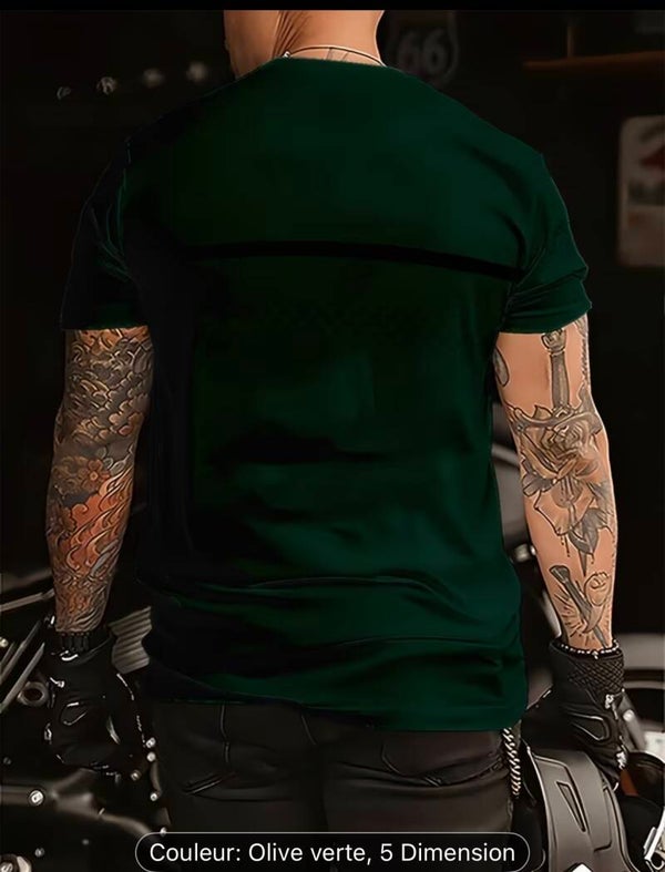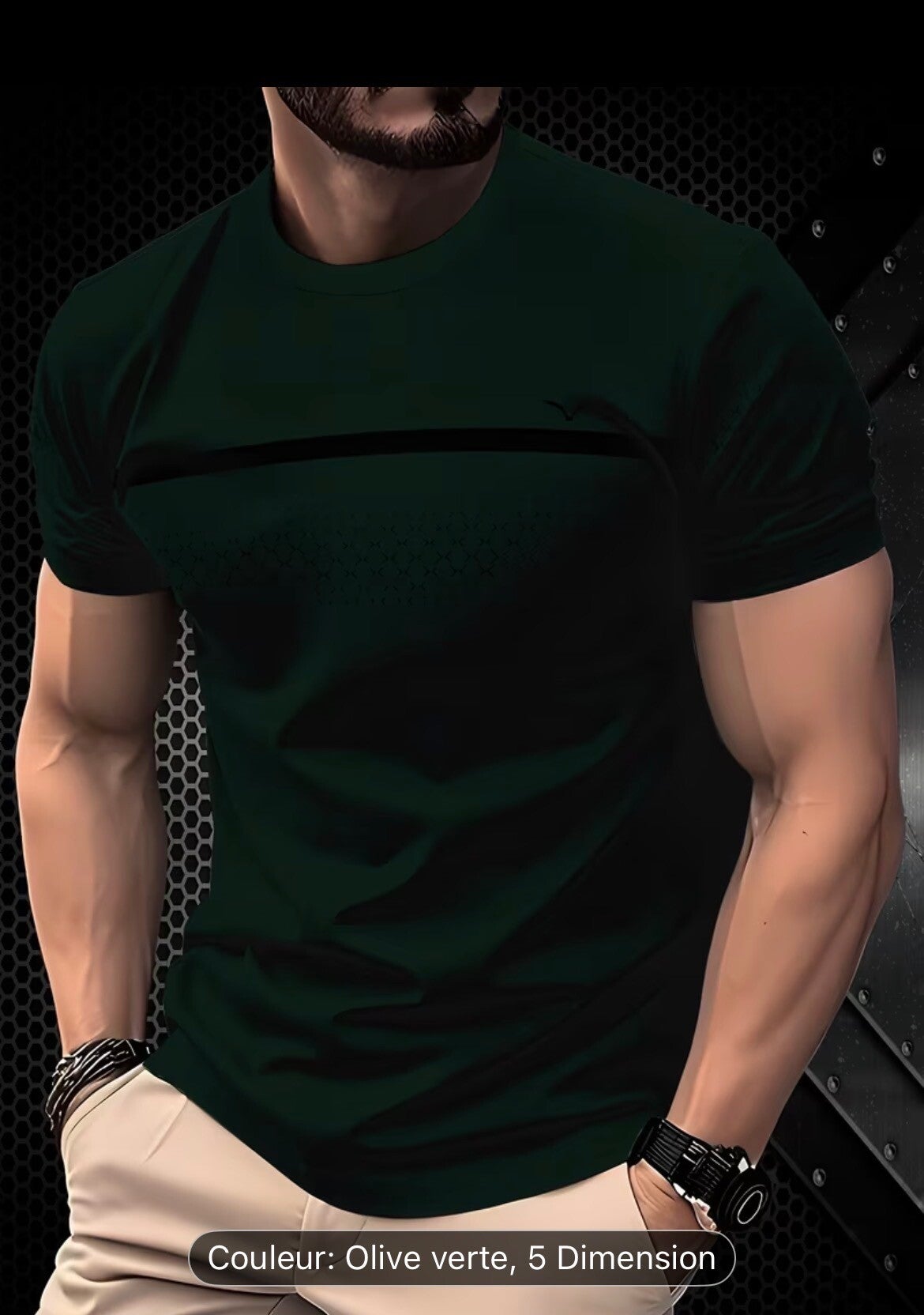 T-shirt vert décontracté, tissu polyester durable et épais à 150 aiguilles respirantes, coupe régulière, manches courtes, confort toutes saisons. Polyester.