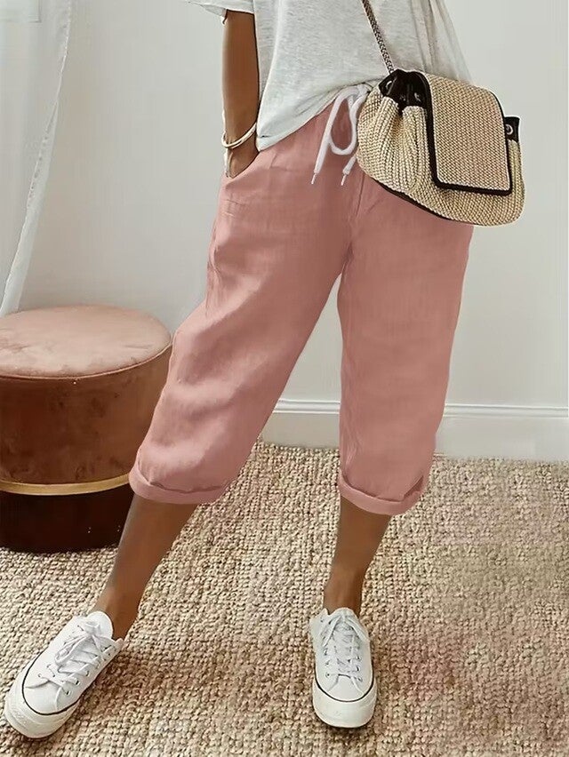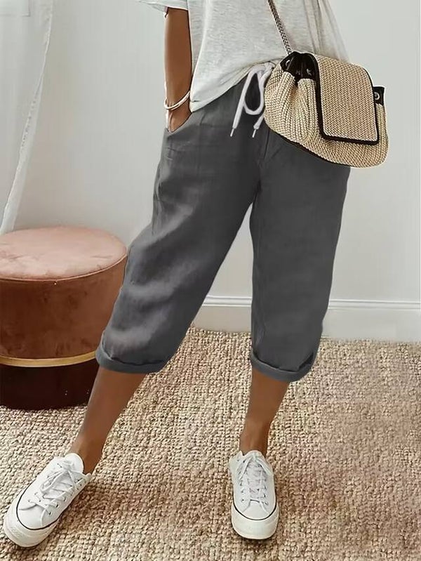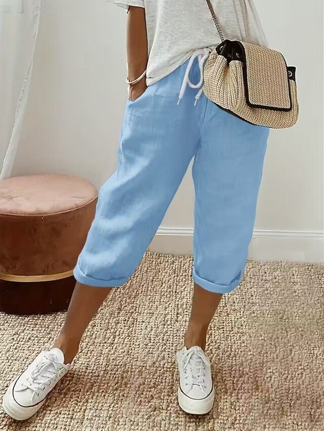 Pantalon très polyvalent, se porte pleine longueur ou 3/4 selon... Collection printemp 2026, coupe ample, taille élastique avec cordon pour plus de confort. LE pantalon à avoir dans sa garde-robes. Polyester extensible.