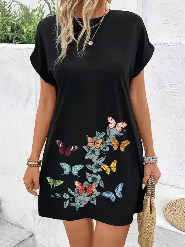 Robe danse de papillons et fleurs, tissu doux et confortable, essentiel printemps/été, hypoallergénique et respirant. 95% Polyester, 5% Élasthanne.