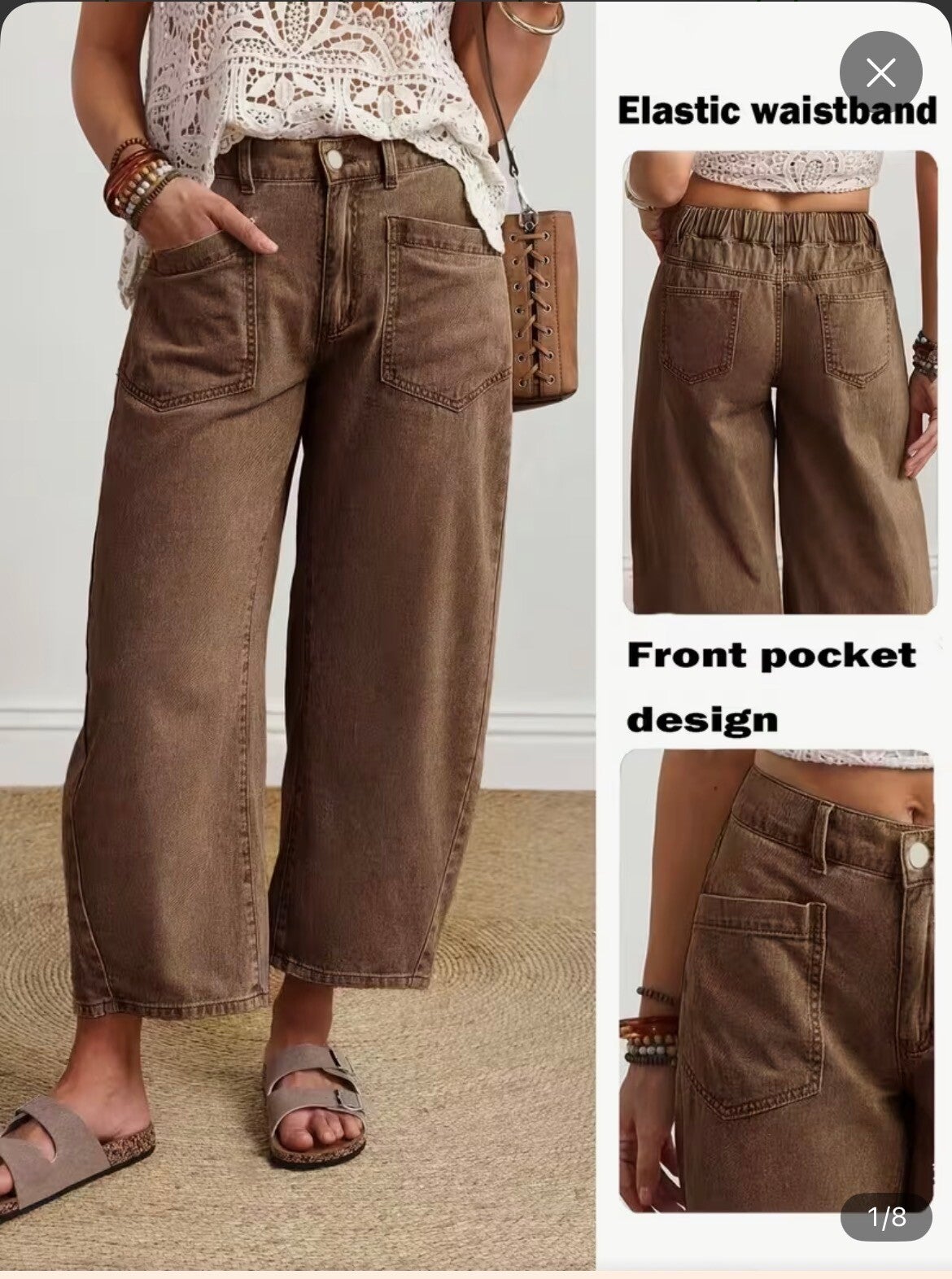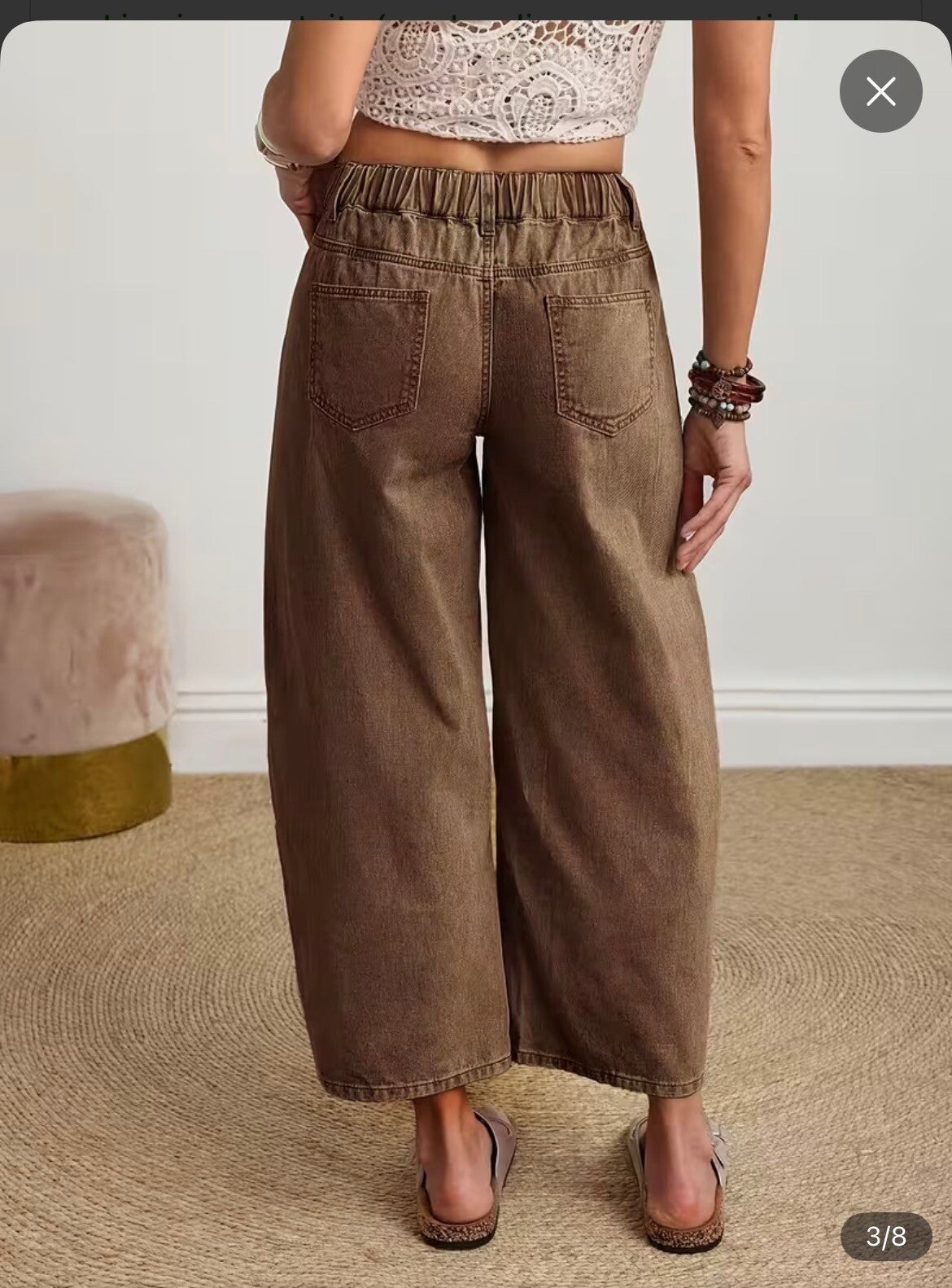 Pantalon, coupe classique et élégante, taille mi-haute non extensible, teinte marron tendance, jambes larges, du style à bas prix.