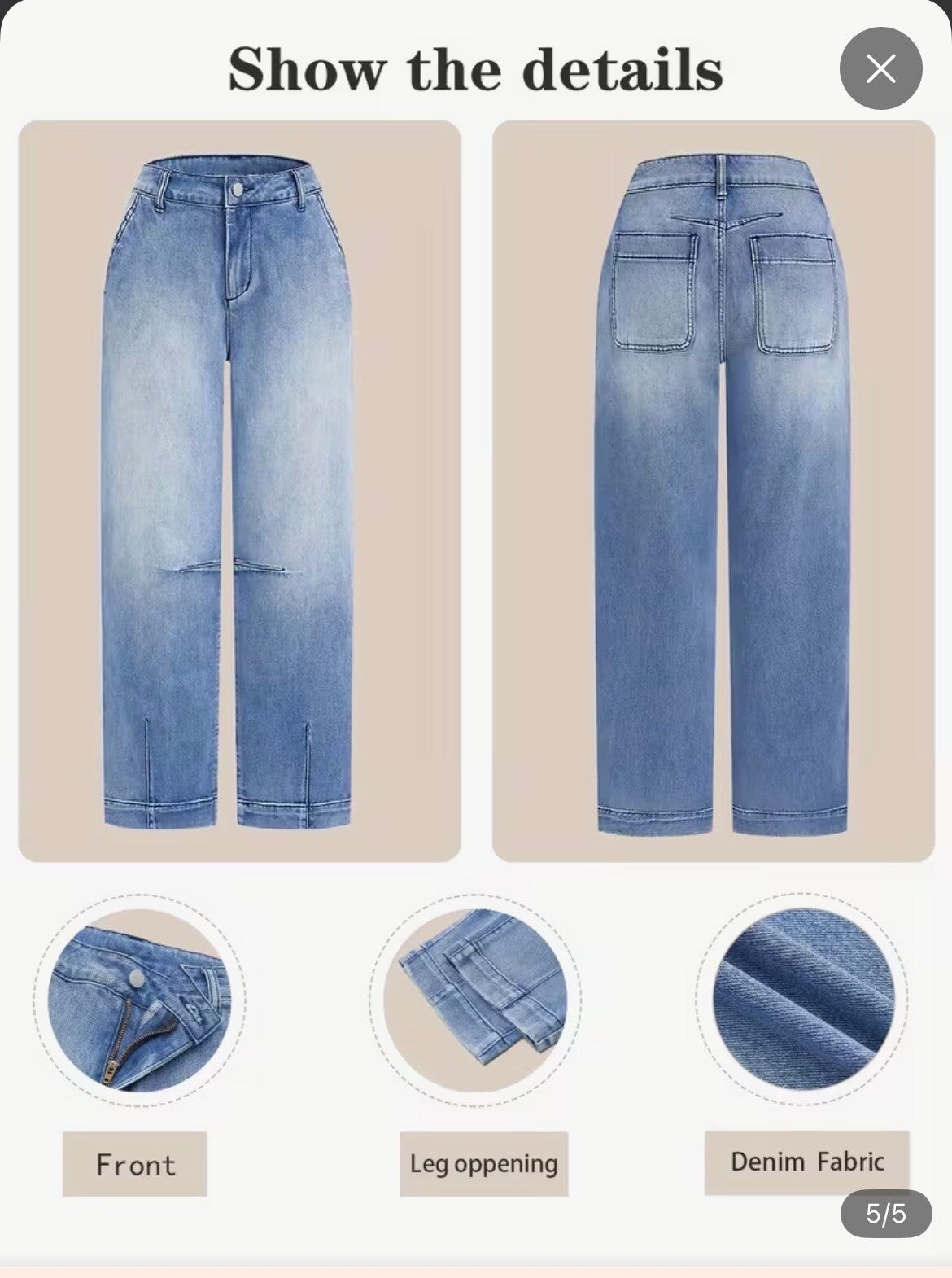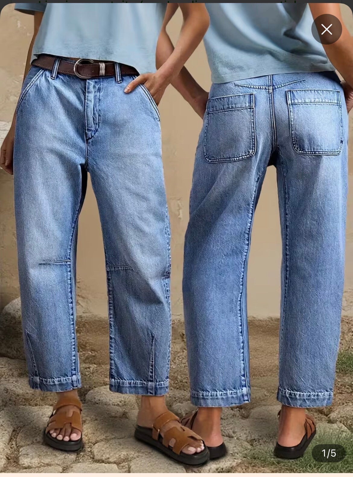 Jean court, denim baril délavé, modèle 2026, ample, extensible, avec poches, jambes larges, tenue de style urbain, se porte 4 saisons.