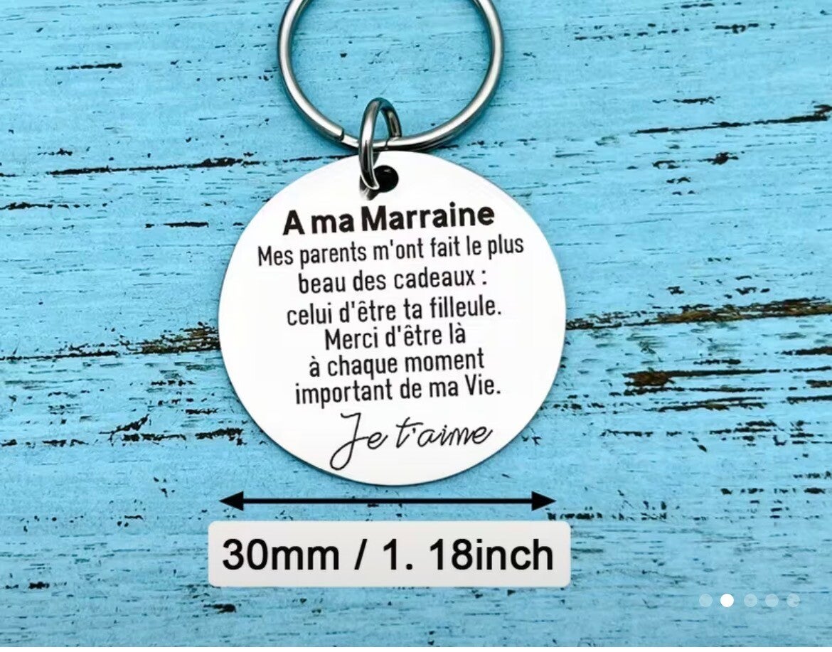 Porte-clés en acier inoxydable, durable, avec gravure inspirante en français - Cadeau parfait pour marraine.