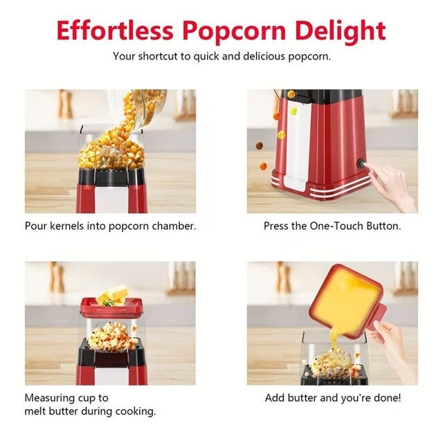 Machine à popcorn, rapide, sans huile, collation santé pour soirées cinéma.