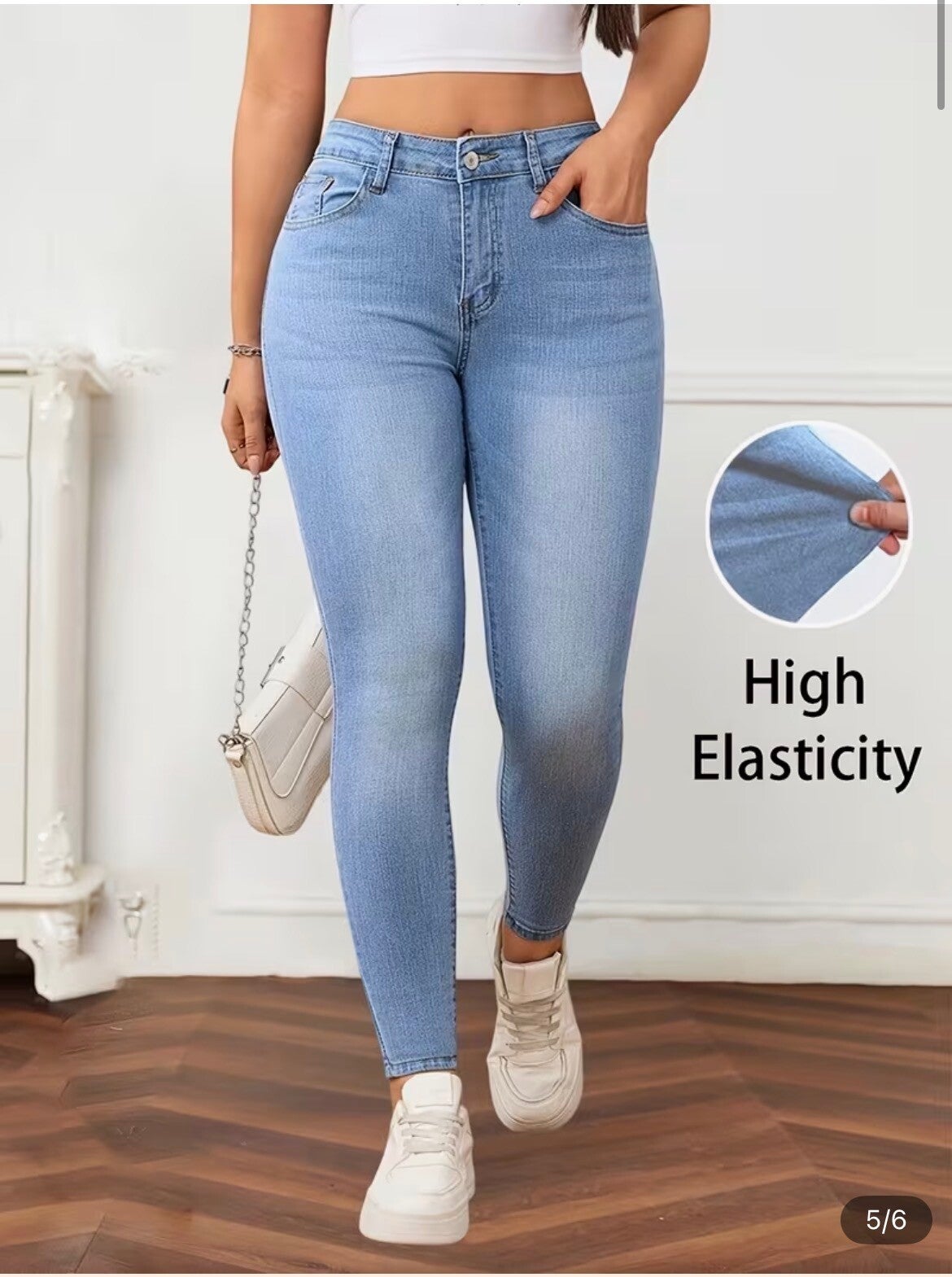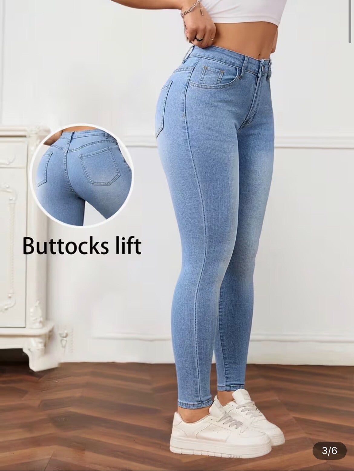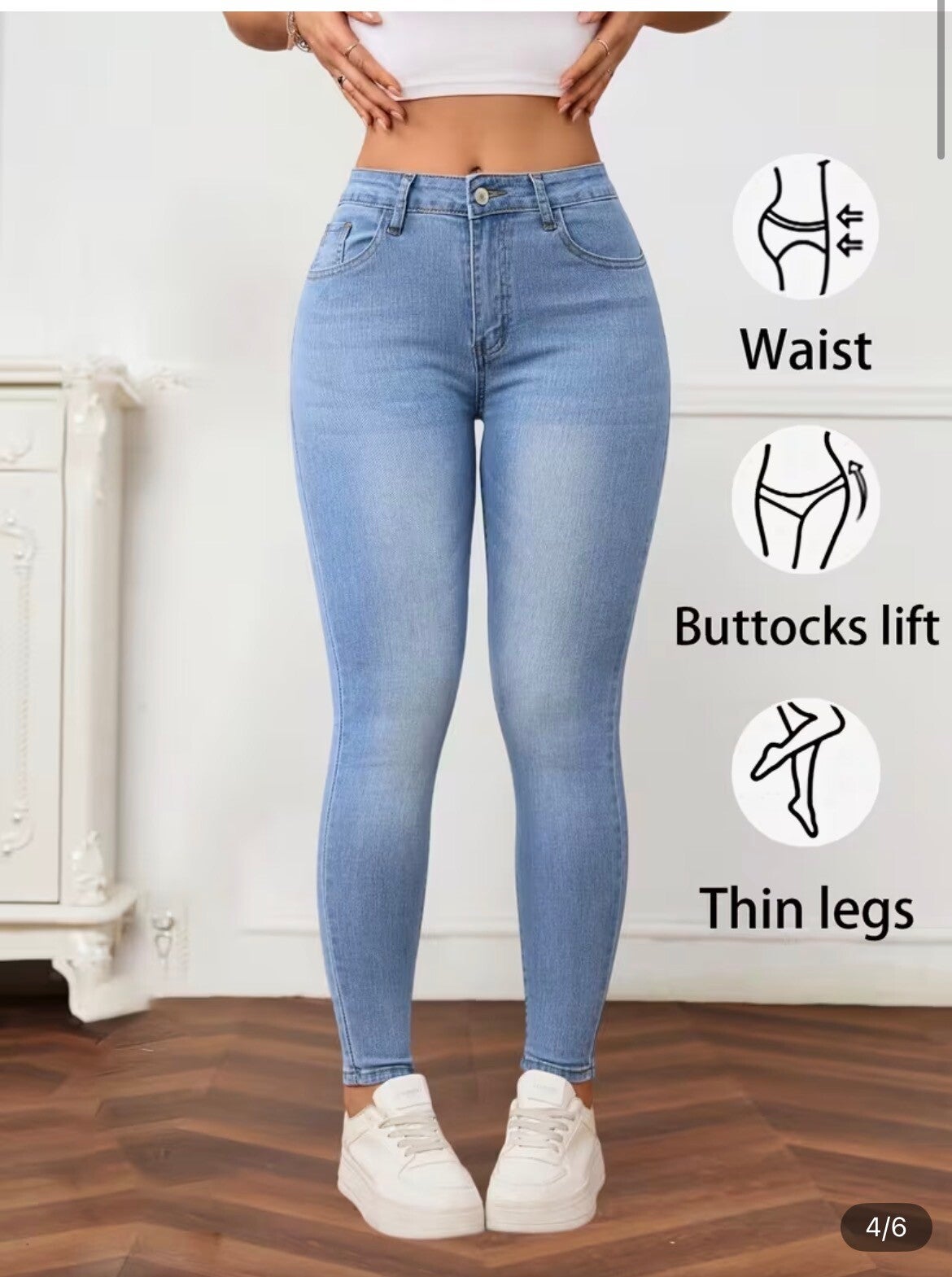 Jeans skinny en denim stretch slim tendance. 70% coton, 27% polyester, 3% elasthanne.